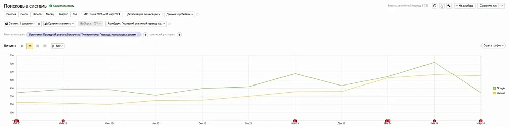 Поисковый трафик с 1 мая 2023 по 31 марта 2024