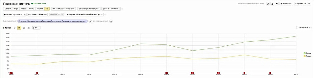 Поисковый трафик с 1 мая 2024 по 30 апреля 2025