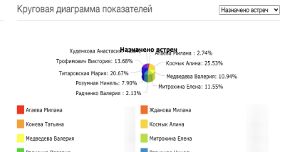 Конкретно для операторов были разработаны отчеты по назначенным и проведенным встречам, количеству и качеству звонков. На основании всех этих данных у них был KPI, согласно которому формировались заработные платы и премии.